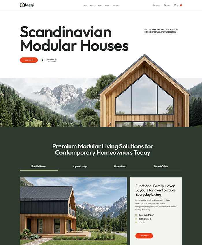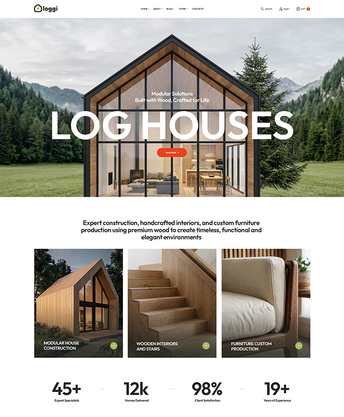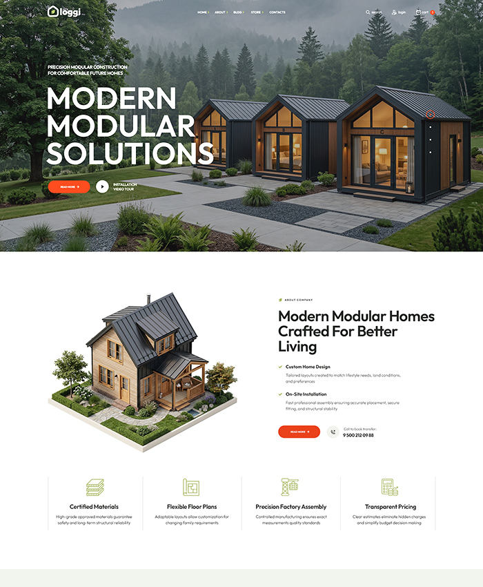 Complete modular house realization from first foundation works to interior finishing and landscape design, delivered by one experienced team